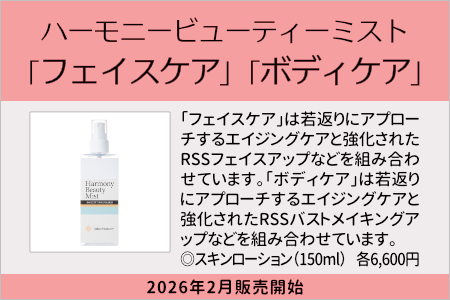 「フェイスケア」は若返りにアプローチするエイジングケアと強化されたRSSフェイスアップなどを組み合わせています。「ボディケア」は若返りにアプローチするエイジングケアと強化されたRSSバストメイキングアップなどを組み合わせています。