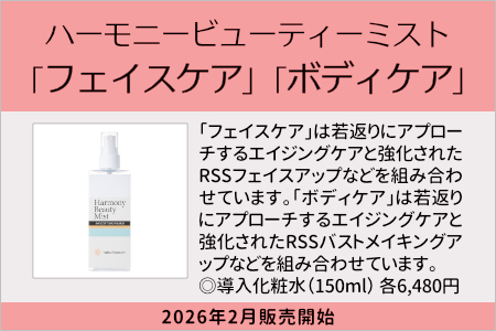 「フェイスケア」は若返りにアプローチするエイジングケアと強化されたRSSフェイスアップなどを組み合わせています。「ボディケア」は若返りにアプローチするエイジングケアと強化されたRSSバストメイキングアップなどを組み合わせています。